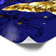 Composition of luxurious sapphire and gold jewelry butterflies on blue textured background.