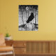 Poster Corbeau (oiseau noir) dans les bois avec Lune et é