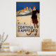 Affiche montrant une femme posée sur les pistes de ski à Cortina d'Ampezzo.