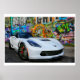 2015 Z06 Corvette photographiée contre un bâtiment recouvert de graffitis massifs.