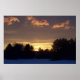 coucher de soleil à l'horizon surplombant un champ de neige et les bois du Maine
