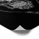 Ce dessin élaboré de crâne à sucre DJ est décoré de tourbillons complexes et de motifs à points. Les écouteurs sont assis sur le dessus du crâne avec deux fils suspendus en dessous. Cette image agressive inspirée de Day of the Dead est parfaite pour les musiciens et les mélomanes.
