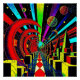 A.I. a créé une composition psychédélique géométrique, surréaliste abstraite de globes, de croissant, de cubes, de planètes, d'orbes, de sphères et de tourbillons de formes et de couleurs différentes dans un arrangement qui a satisfait les sens de l'artiste.
