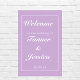 Joli, moderne, minimaliste et tendance affiche mariage avec un arrière - plan mauve pastel (Pantone 2022 couleur pick "Orchid Bloom") avec des blocs de texte personnalisables blancs dans les polices modernes