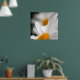 Affiche montrée avec une photo de haut d'une jolie fleur marguerrière avec une gouttelette d'eau. Customisez cet objet ou achetez tel quel. Image stock