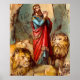 Daniel dans l'affiche de la tanière du lion a Daniel dans la tanière des lions avec quatre ou cinq lions voulant le manger il a un casquette rouge et robe bleue sur
