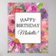 Fleurs sauvages d'aquarelle violet et rose personnalisé "Joyeux anniversaire" signe. Personnalisé avec le nom de l'invité d'honneur. Contactez-nous pour obtenir de l'aide sur la personnalisation et la mise en correspondance des produits.