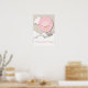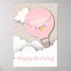 Une affiche d'anniversaire illustrant une montgolfière rose flottant au-dessus des nuages avec un arrière - plan d'éclatement de soleil. Des invitations à des fêtes d'anniversaire, des autocollants et d'autres sont disponibles à Jill's Paperie.