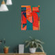 Cette affiche d'art abstraite ajoutera le dimensionnement à tout jeu de couleurs neutre. Il présente des notes de rouge, d'orange, de vert, de turquoise, d'or et de marine dans une combinaison intéressante de formes audacieuses. Disponible sur toile ou papier en plusieurs tailles. L'original était un crayon aquarelle sur papier