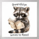 Joli petit raton laveur portant des lunettes et lisant un livre. Parfait pour encourager votre enfant à lire. Décor de pépinière carré 12" x 12". Utilisez le lien "Personnaliser ce modèle Détails" pour changer le nom. Texte en noir. L'IA a aidé graphisme acheté à des fins commerciales. Oeuvre : MokoDE