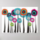 Fleurs Whimsical Art Poster IV, fleurs vives et colorées en fuschia, bleu vif, vert citron, orange et rouge avec tiges noires.