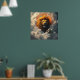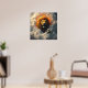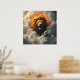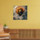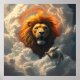 Lion et agneau dans le ciel avec affiche d'art des nuages.