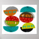 Poster d'art moderne du milieu du siècle demi-lunes design en couleurs rouge, orange et jaune, turquoise brun et noir. . Couleurs pertinentes à la période. Le design est parfait pour n'importe quelle maison moderne du milieu du siècle.
