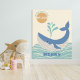 Impression d'une affiche murale de pépinière de baleines bleues. Cette jolie baleine et le message encourageant de "faire votre propre éclaboussure" est une façon amusante d'incorporer la vie marine dans une petite garderie ou dans une salle de jeux pour enfants ou un décor de chambre. Avec une illustration d'une baleine bleue dans une mer ondulée, vous pouvez customiser le nom pour la personnaliser. Vous pouvez trouver d'autres produits avec ce design dans la collection Blue Ocean Animals Nursery Décor Collection dans le Magasin Magnifiquement Abstrait. (© conception artistique Joliment Abstraite)