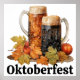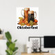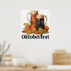 Mugs de bière légère et foncée avec feuilles d'automne, citrouille et texte de l'Oktoberfest...affiche d'art