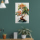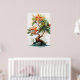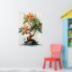 La représentation artistique de Wabi-Sabi d'un arbre avec un tronc tordu se trouve au-dessus d'une surface rocheuse, montrant des feuilles vibrants et multicolores. L'arrière - plan possède des éclaboussures douces et aquarelles qui ajoutent une qualité éthérée à la scène.