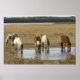 Photographie des chevaux sauvages de l'Assateague qui boivent de la piscine d'eau.