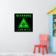 Avertissement - Laser en cours d'utilisation - affiche noire avec lettrage vert et panneau d'avertissement laser.