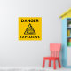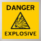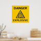 Danger - Explosif - affiche jaune-orange avec lettrage noir et panneau d'avertissement explosif.