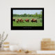 Une affiche montrant un taureau Hereford et du bétail Hereford broutant dans un champ. Parfait pour quiconque possède un ranch de bétail ou aime simplement le bétail et les animaux.