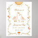 Cette affiche d'accueil baby shower est composée d'une jolie famille d'oies avec leur petite, et d'un cadre d'aquarelle fantaisiste avec verdure, fleurs de jardin et champignons. Parfait pour le thème branché de l'oie/canard, ou baby showers de jardin de jardins.