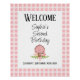 En vichy rose et fleuri signe de bienvenue animal de ferme pour la fête d'anniversaire de votre enfant à la niche !