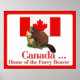 Jouez vilain sur les mots pour ces cadeaux et vêtements amusants. Ils présentent un castor assis avec le drapeau canadien dans l'arrière - plan. Le texte dit "Canada... Accueil du castor de la fusillade"