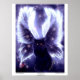 Un chat de fée noir aux ailes violettes brillantes contre un arrière - plan étoilé. Chat de fée Innocence par Michaeline McDonald. Copyright de l'oeuvre © Michaeline McDonald.