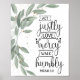 Particulier au client, floral "Agissez juste aimer miséricorde, marchez humblement. Poster Micah 6:8".
