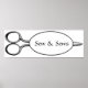 Un beau dessin d'une paire de ciseaux avec un ovale au milieu. Vous entrez votre propre nom de magasin ou vous dites à l'intérieur de l'ovale. Parfait pour un magasin de beauté ou quelqu'un qui aime coudre.