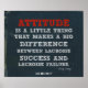 Une affiche de crosse motivante, en denim bleu arraché, avec des lettres rouges et blanches. (Cette impression de crosse inspirante fait partie d'une série de 10 affiches avec des guillemets de crosse dans ce design en denim.) La citation de crosse sur cette affiche sportive dit : "L'attitude est une petite chose qui fait une grande différence entre le succès de la crosse et l'échec de la crosse." ~ Felicity Luckey