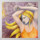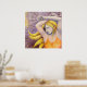 Une affiche avec ma peinture mixte sur Fire Goddess Dancing dessus. Le tableau est un gros plan d'une femme qui danse avec des fans de pois.