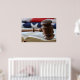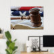 Jeu de Juge en bois sur une bible. Arrière - plan américain.