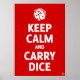 Un riff geek de joueur sur l'affiche classique "Keep Calm and Carry On" de 2ÈME GUERRE MONDIALE, qui rappelle aux gens "Keep Calm and Carry Dice". Un poster pour le mur de votre salle de jeux, avec une matrice à six côtés (d6).
