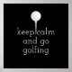 Ce poster de devis de golf est pour les golfeurs en noir et blanc avec texte garder le calme et aller golfer pour la décoration murale à la maison ou au bureau.