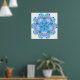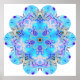 Belle conception kaléidoscope utilisant un motif paon marbré dans les couleurs bleu, jaune et violet.