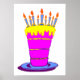 Un gâteau d'anniversaire géant avec givrage dégivrant rose et jaune et bougies bleues brillantes.