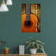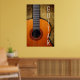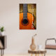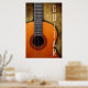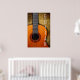 Une guitare acoustique avec un arrière - plan grunge et le mot "guitare" qui coule à droite de l'image.