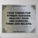 Cette affiche de fitness motivationnelle en acier et noir présente une citation de fitness de l'auteur et designer Felicity Luckey. Ce poster de gym fait partie d'une série de 52 affiches motivantes de gym pour l'inspiration de l'exercice et la motivation de l'entraînement. Voici la citation de l'exercice : QUATRE CHOSES POUR LE SUCCÈS DE LA FITNESS : UNE NOURRITURE SAINE ET L'EXERCICE, PENSEZ ET CROYEZ. ~ Felicity Luckey