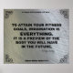 Cette affiche de fitness motivationnelle en acier et noir présente une citation de fitness de l'auteur et designer Felicity Luckey. Ce poster de gym fait partie d'une série de 52 affiches motivantes de gym pour l'inspiration de l'exercice et la motivation de l'entraînement. Voici la citation de l'exercice : POUR ATTEINDRE VOS OBJECTIFS DE FITNESS, L'IMAGINATION EST TOUT. C'EST UN APERÇU DU CORPS QUE VOUS AVEZ DANS LE FUTUR. ~ Felicity Luckey