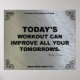 Cette affiche de fitness motivationnelle en acier et noir présente une citation de fitness de l'auteur et designer Felicity Luckey. Ce poster de gym fait partie d'une série de 52 affiches motivantes de gym pour l'inspiration de l'exercice et la motivation de l'entraînement. Voici la citation de l'exercice : LE TRAVAIL D'AUJOURD'HUI PEUT AMÉLIORER TOUS VOS DEMAIN. ~ Felicity Luckey