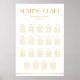 Carte de sièges mariage Great Gatsby en or et blanc (avec 19 tableaux) avec texte personnalisé - vous pouvez ajouter le nom de la mariée et du marié, la date du mariage et le nom de l'invité. Les dimensions de l'affiche sont de 24 pouces sur 36 pouces.