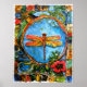 Dragonfly 2 - L'une des aquarelles Enfants de la Terre, Une libellule rouge étincelle sur un étang turquoise, célébrant les couleurs de l'été avec joie.Poster, imprimer.