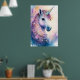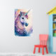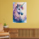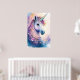 Poster d'une licorne majestueuse avec une corne chatoyante et colorée est représenté au milieu d'un arrière - plan rêveur de couleurs pastel douces. Sa crinière flottante est ornée de fleurs délicates, créant une scène éthérée et enchanteresse.
