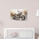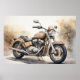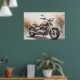 Affiche d'une moto classique. Le feuillage aux tons terre en arrière - plan ajoute une ambiance chaleureuse et rustique.