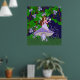 Poster avec une belle princesse de la fée des dents assise sur un champignon violet admirant la dent qu'elle a collectionnée. Art numérique créé par Hinterland Harmony Art and Illustrations de KLeighE