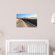 Affiche avec photo de la route traversant les dunes du désert de Corralejo, Fuerteventura, Îles Canaries, Espagne.