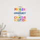 CHAQUE PROBLÈME EST L'OCCASION D'UNE SOLUTION CRÉATIVE ! Faites réfléchir les étudiants/clients avec cette affiche réfléchie, lumineuse et joyeuse. Une affiche élégante et géniale en classe/bureau de conseiller pour inciter les élèves à sortir de la boîte et à redéfinir le problème de façon à être créatif et à trouver une solution ciblée ! Un grand poster à accrocher dans une classe du collège ou du lycée. Aussi une excellente affiche pour les bureaux de conseillers en orientation scolaire, les bureaux principaux, les thérapeutes ou les psychologues pour rappeler aux enfants et aux ados qu'il s'agit de perspective et qu'ils ont maintenant les capacités de changer leur propre vie en cherchant des solutions créatives à leurs problèmes!