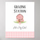 Poster de la station de nourriture en vichy rose et fleurie pour la fête d'anniversaire de votre enfant au baryard !