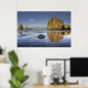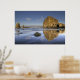 Cannon Beach Haystack Rock Low Tide in Oregon Coast along Pacific Ocean with Blue Sky Reflection Poster